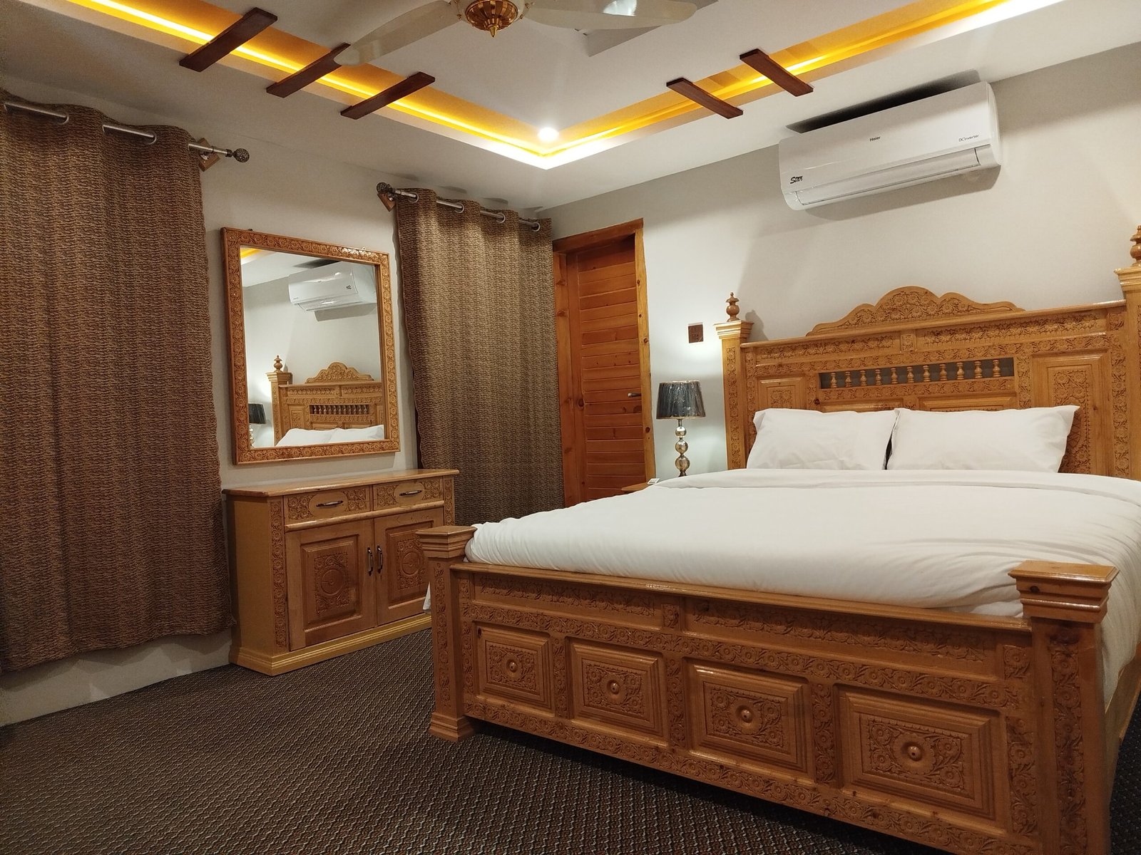 Upgrade your stay with our air-conditioned Deluxe Room — a perfect blend of comfort and style. Designed for guests who prefer temperature control and added space, this room offers a relaxing experience in the lap of Baltistan’s beauty.